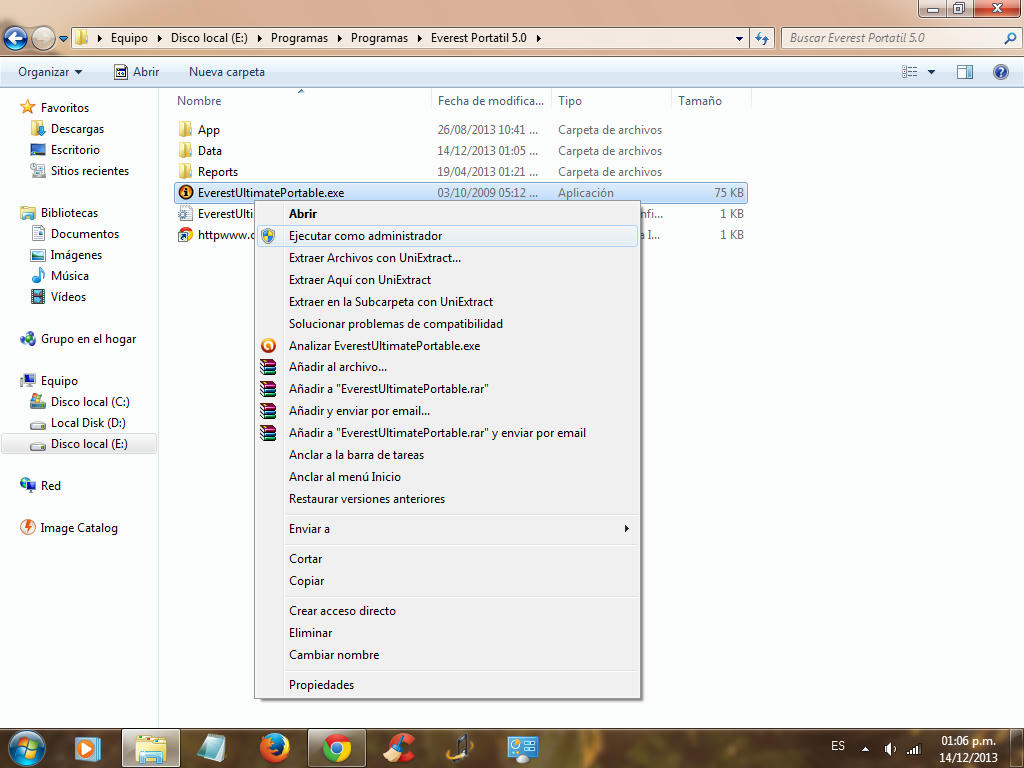 Primero que nada extraen el archivo con Winrar o su descompresor a su disposición, pero recomiendo Winrar, hecho eso ejecutan Everest como administrador (si tienen windows 7).