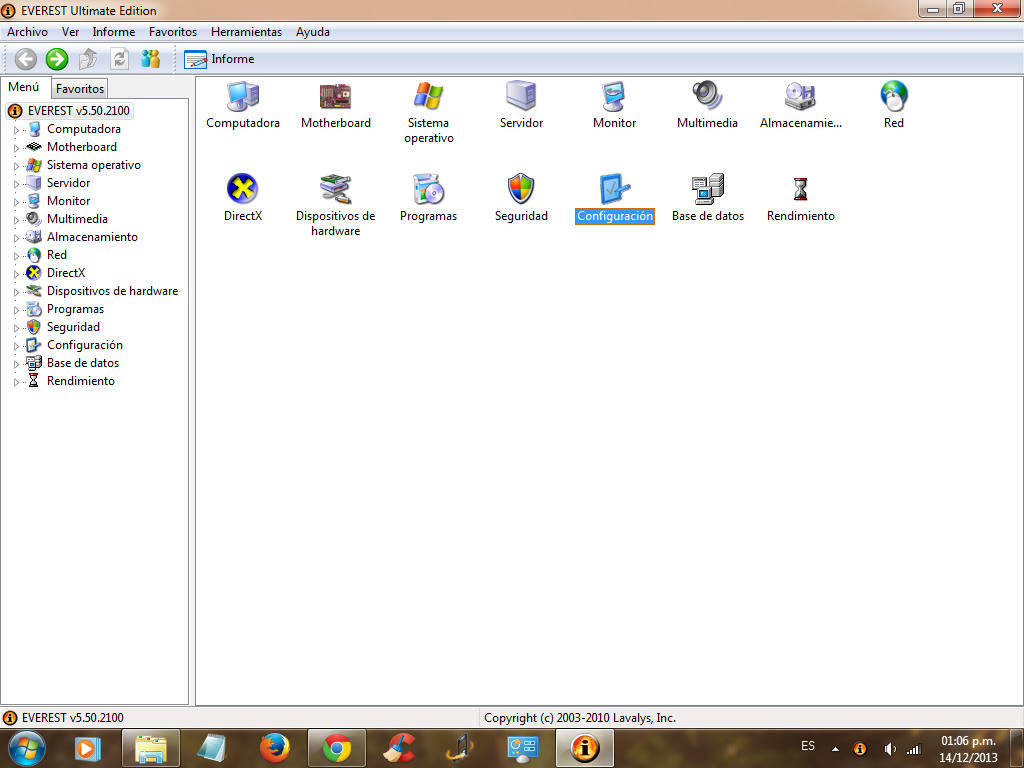 Everest Ultimate Edition realiza un extenso y detallado análisis del sistema, mostrando prácticamente todos los aspectos del sistema referentes a hardware, software, configuración de red y más.