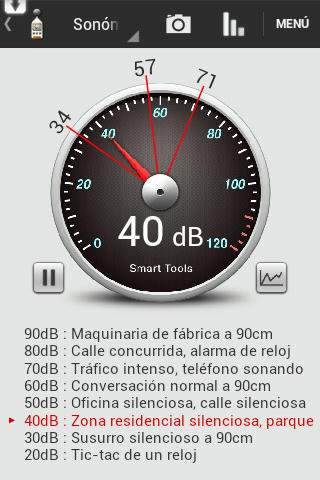 También cuenta con un medidor de decibeles, que en otras palabras mide el sonido.