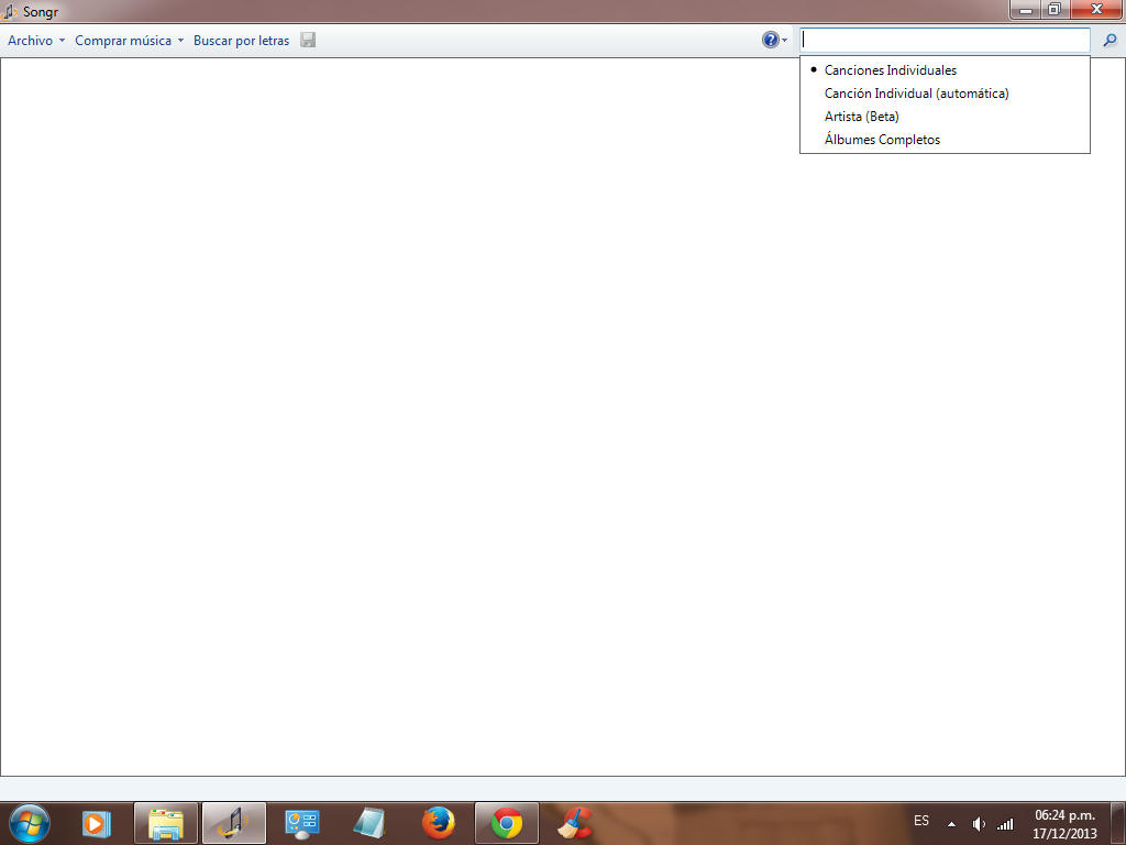Después abren Songr, y en la parte superior derecha estará el cuadro de búsqueda, ahí escriben el nombre del artista o el nombre de la canción y dan enter o click en la lupa.