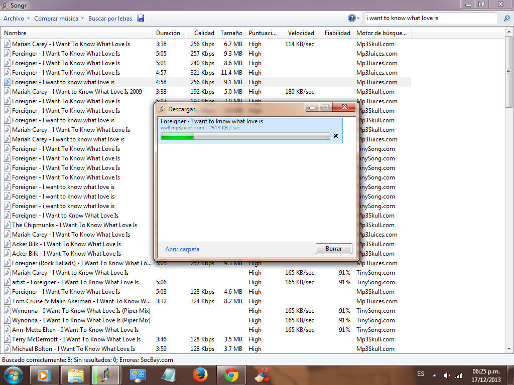 Una vez descargada dan click a "abrir carpeta", y ahí estarán las canciones descargadas desde Songr.