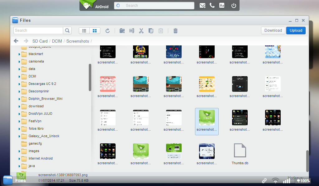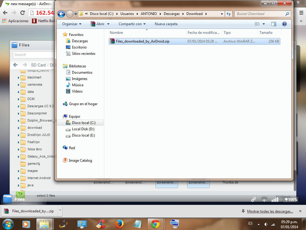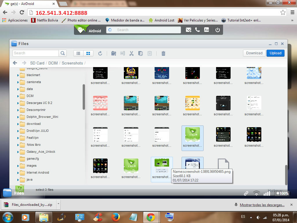 Ahora si ya pueden subir o bajar archivos de su Android a la PC o viceversa. Dejare unos ejemplos.