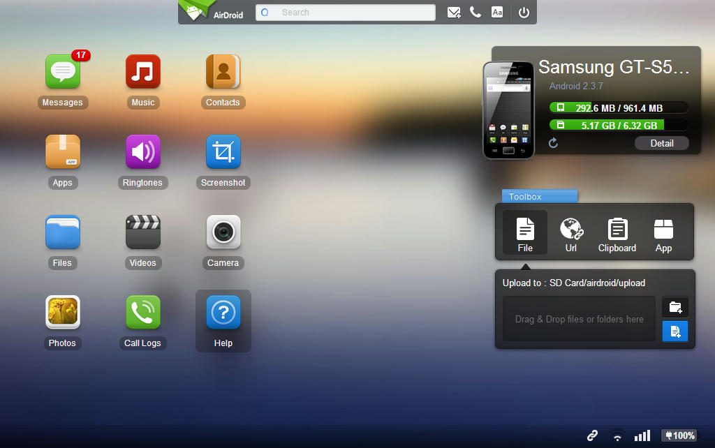 Hola, en este post comentaré acerca de airdroid, para empezar ¿qué es Airdroid?, airdroid es una aplicación con la cual es posible transferir archivos de PC a Android y Android a PC sin utilizar algún cable físico, como un adaptador de USB, ¿como es posible?, bueno airdroid establece una conexión vía FTP por Wi-Fi, pero lo hace muy sencillo al usuario. Con solo dos "Clicks" en nuestro SmartPhone.