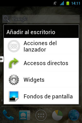Mantén pulsado el inicio de tu Android hasta que aparezca un menú similar al mostrado en la imagen. Selecciona Fondos de pantalla
