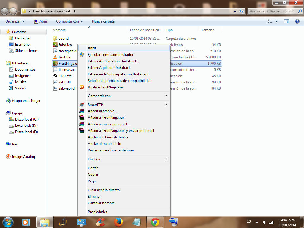 Instrucciones: solo descomprime el juego y ejecuta el archivo FruitNinja eso es todo.