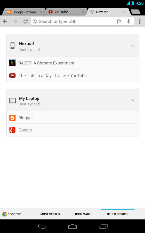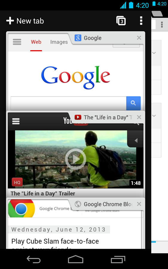 Abre un número ilimitado de pestañas de navegador y cambia rápidamente entre ellas. En tu teléfono, cambia de pestaña como si se tratara de un abanico de cartas. En tu tablet, desliza el dedo de lado a lado para cambiar de pestaña.