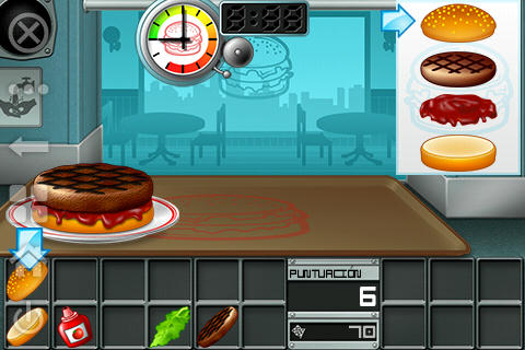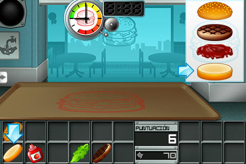 Hamburguesa, es un juego "plataformero" donde tu eres un cocinero que tiene que cumplir con las ordenes de los clientes, se rápido y eficaz ya que la dificulta ira aumentando, las ordenes también y tu tiempo disminuyendo.