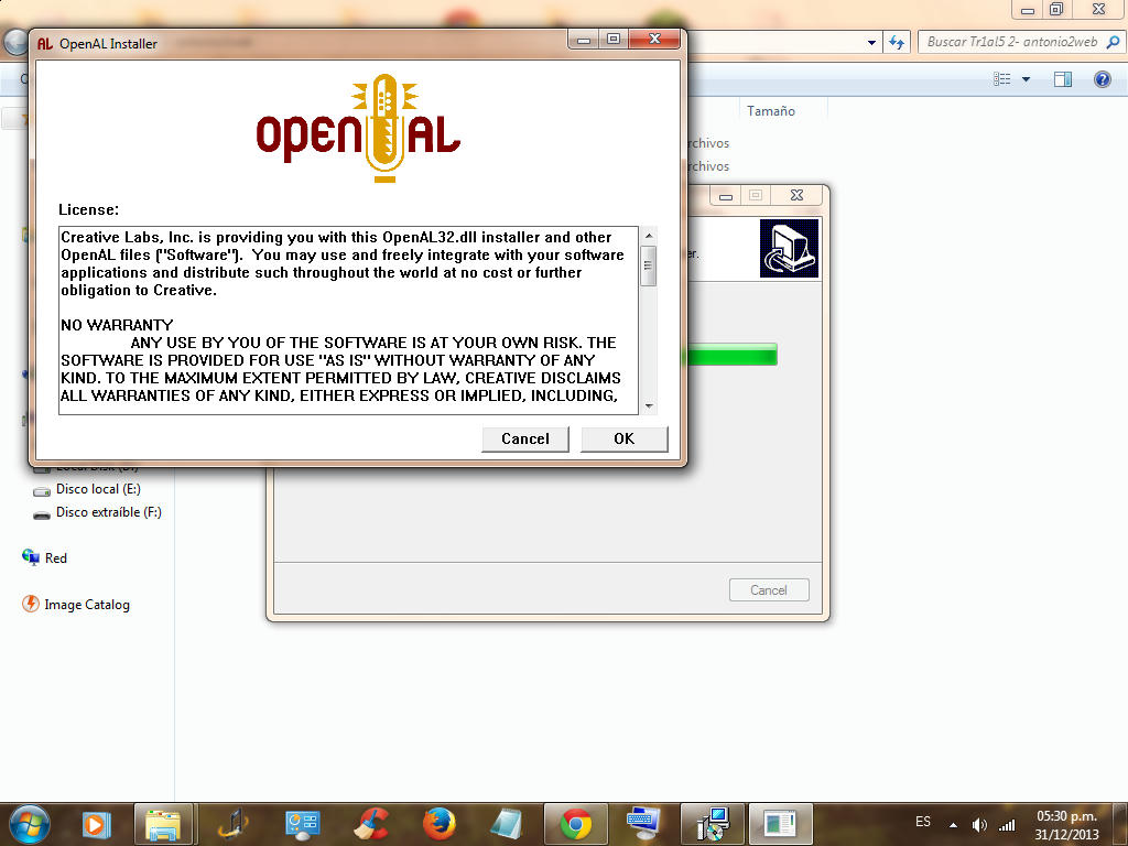Inmediatamente después de instalar DirectX, se abrirá una ventana como esta, solo das click en OK. aparecerá un cuadro adicional y das click en Aceptar.