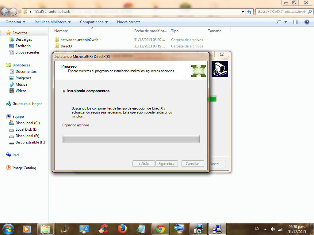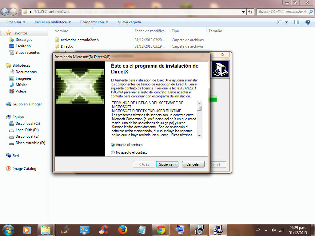 Después, se abrirá una ventana nueva, si deseas instalar DirectX. Das click en Acepto el contrato.