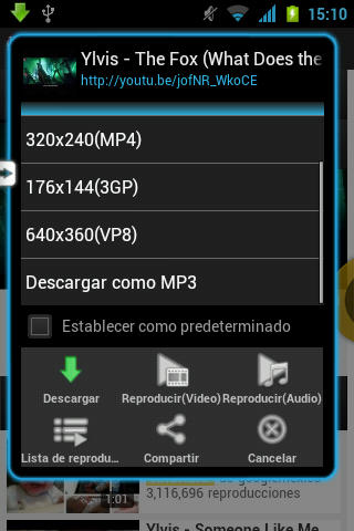 Como veraz, tiene varias opciones, y si deslizas la barra puedes descargarlo como MP3 o reproducirlo en las opciones secundarias.