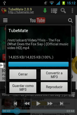 Así es con tubemate es posible descargar tus vídeos favoritos desde tu Smartphone, puedes escoger la calidad del vídeo, velocidad de descarga, o si deseas simplemente descargar el audio de tu vídeo a escoger.