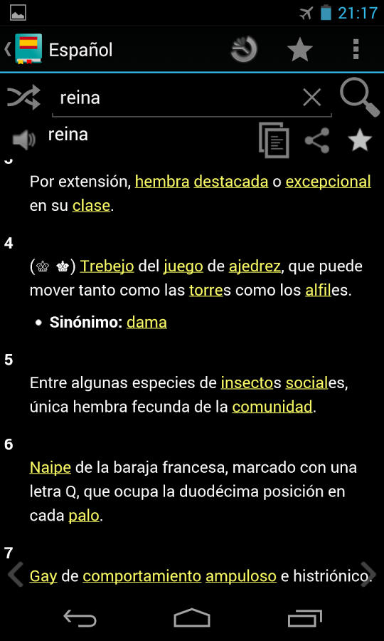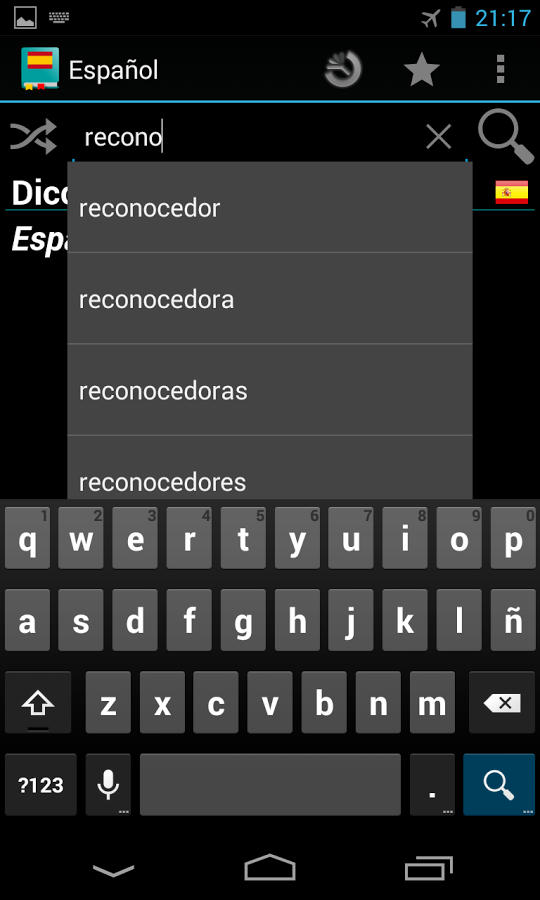 - Botón de búsqueda aleatoria, útil para aprender nuevas palabras